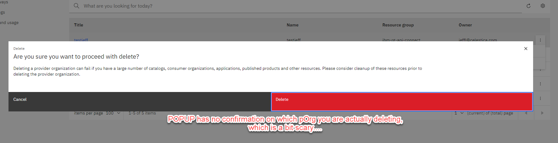 It would be better to say "Are you sure you want to delete xyz pOrg" in the messaging to ensure that you've clicked appropriately. This is important if the Reserved Instance holds things like Prod pOrgs.... You would definetely NOT want to accidentally delete one of those.