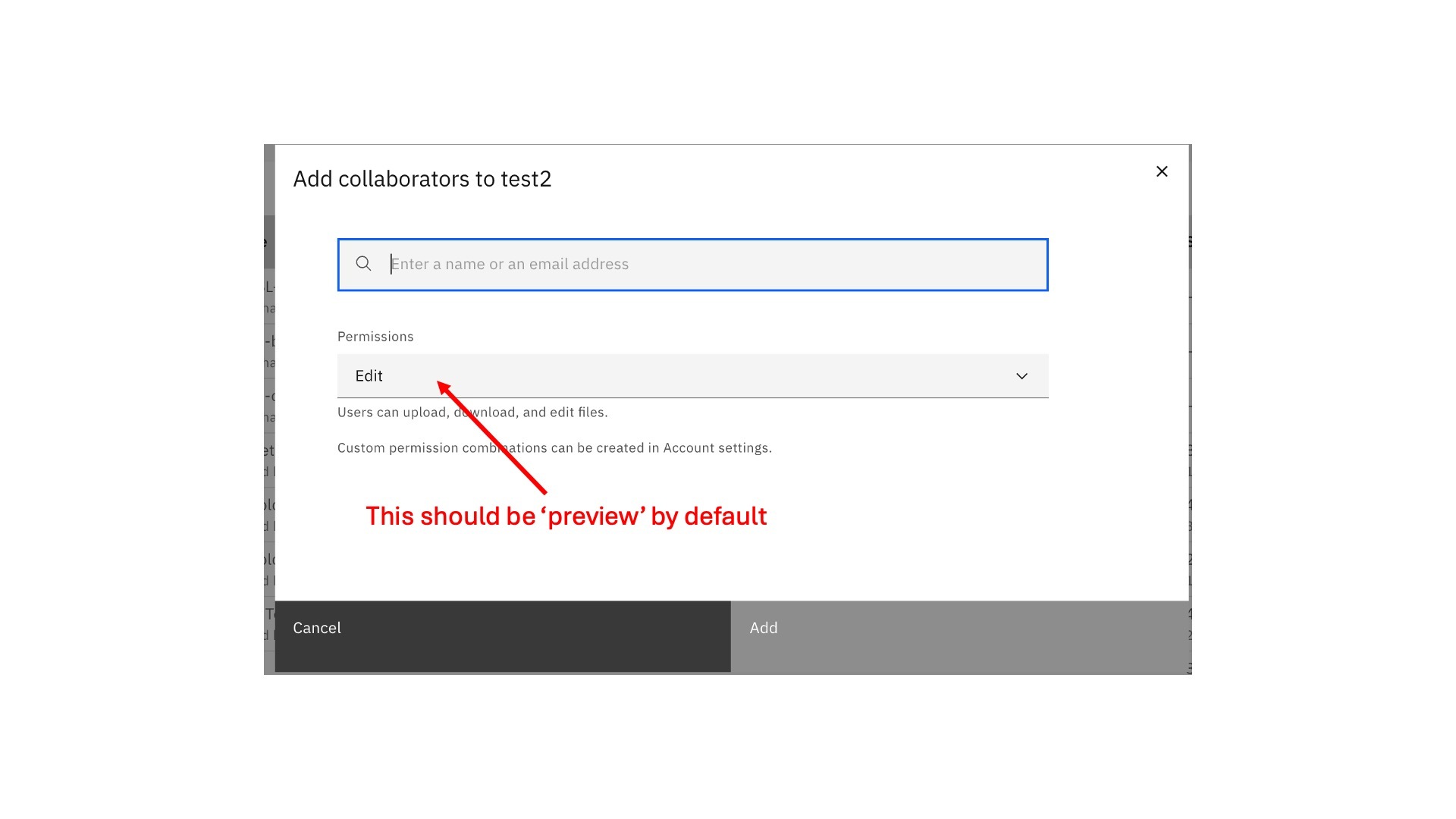 When they share the folder, the default permission is 'Edit'. The requirement if for this value to be 'preview'.