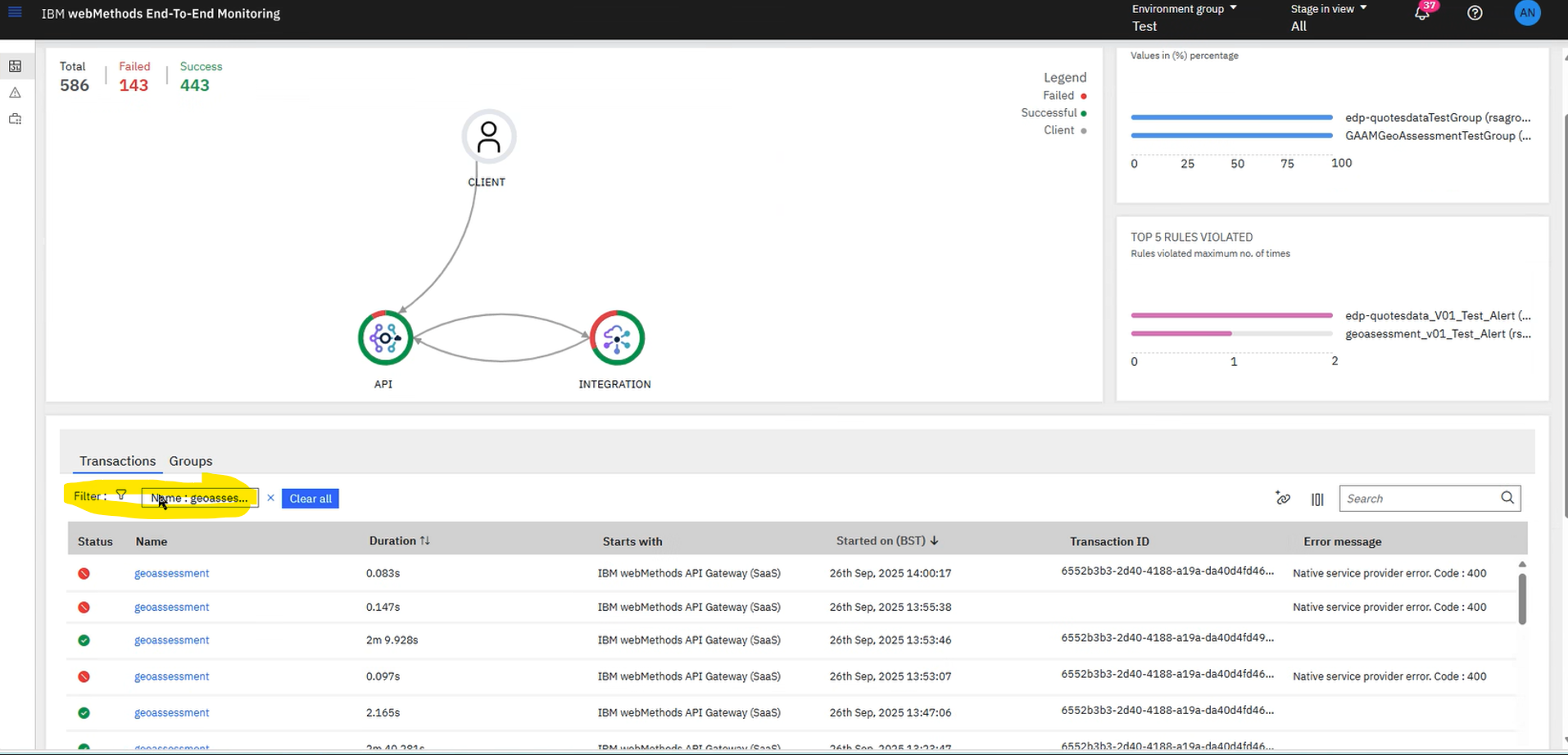 Improve "Filter" field to impact the whole E2E monitoring dashboard instead of only the Transactions table